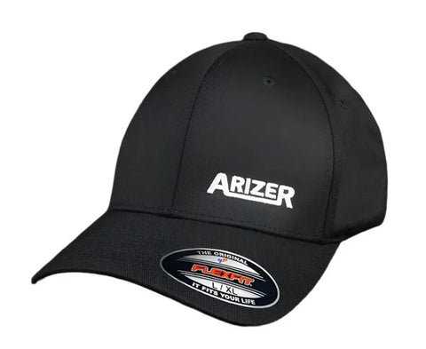 Arizer Flexfit® Baseballkappe mit gesticktem Logo, 6-Panel-Design, silbernem Schirmunterseite und geschlossener Rückseite, von der kanadischen E-Zigarettenmarke Arizer.