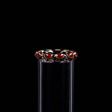 The curved shape combined with great colour accents like the beautiful red-green mouthpiece, the red ice cones, the red edge of the bong base, the red glass dots on the bowl and the great Red Series logo make this glass bong a real eye-catcher.